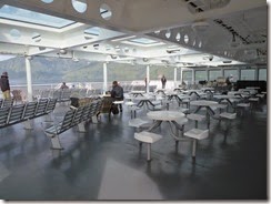 This is a big boat! And really new and sparkly! I’m impressed by how modern and spotless everything is. She’s the MV Northern Expedition, built in the mid 2000s. There are two dining areas on board, one a full service restaurant, the other a self service café.